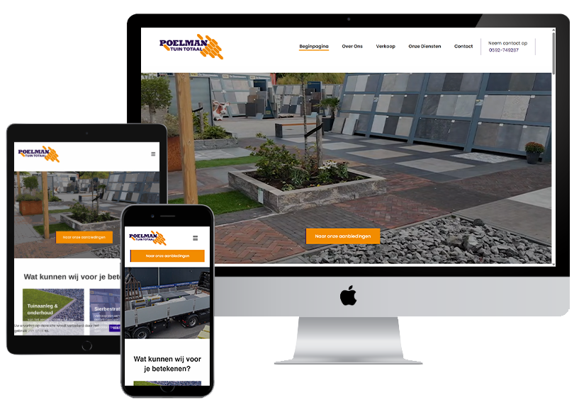 Voor Poelman Tuintotaal in Gieten hebben we een volledig nieuwe website gebouwd. De bestaande site gaf niet meer het juiste beeld van wat Poelman te bieden heeft: een showterrein van 1200 m², meer dan 1800 producten en ruim 22 jaar ervaring in tuinaanleg, bestrating en houtbouw. Daar hoort een website bij die dat ook uitstraalt.
